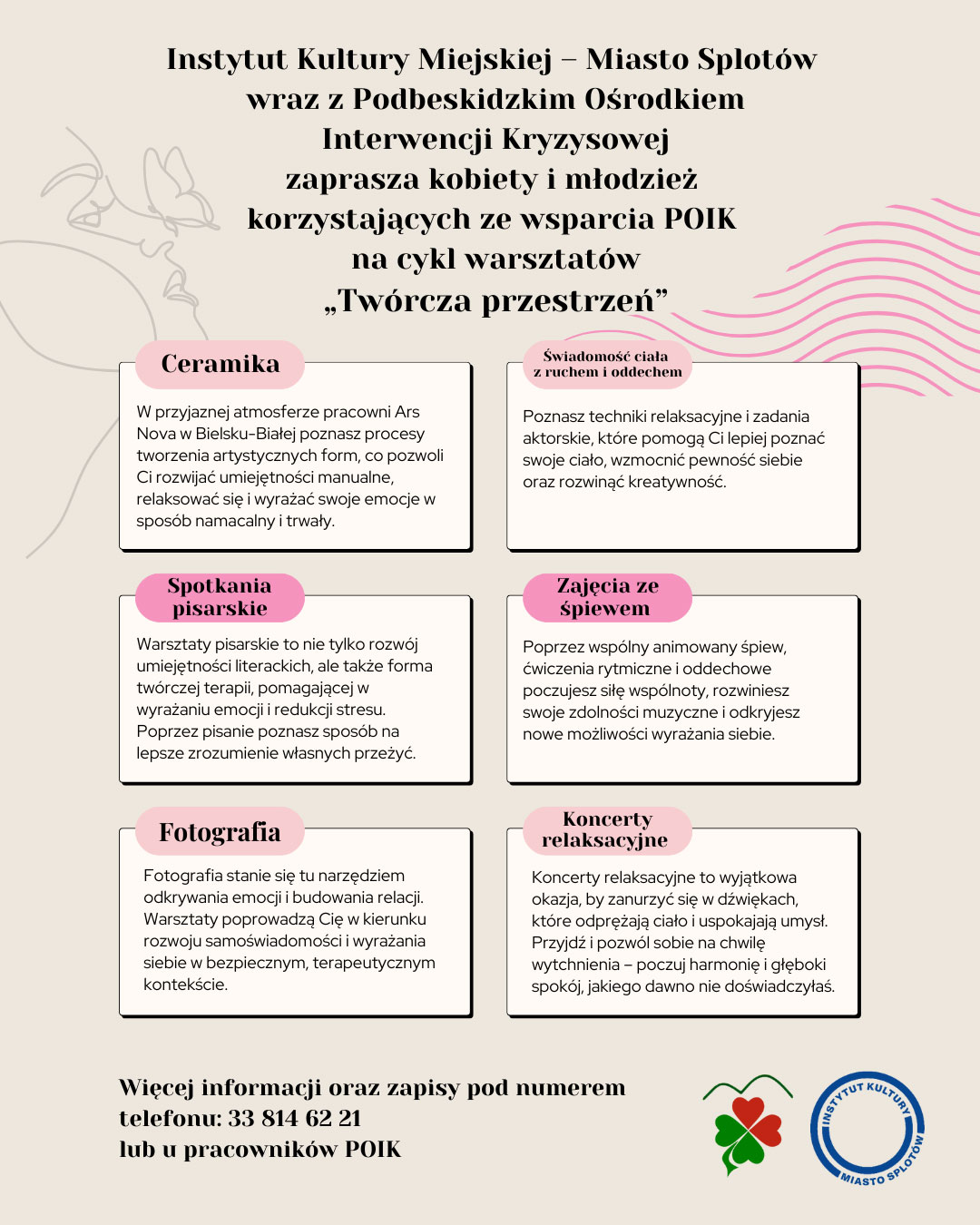 Zajęcia kierowane są przede wszystkim do byłych i aktualnych klientek POIK, ale także do kobiet znajdujących się w trudnym momencie w życiu. Liczba miejsc ograniczona, decyduje kolejność zgłoszeń.